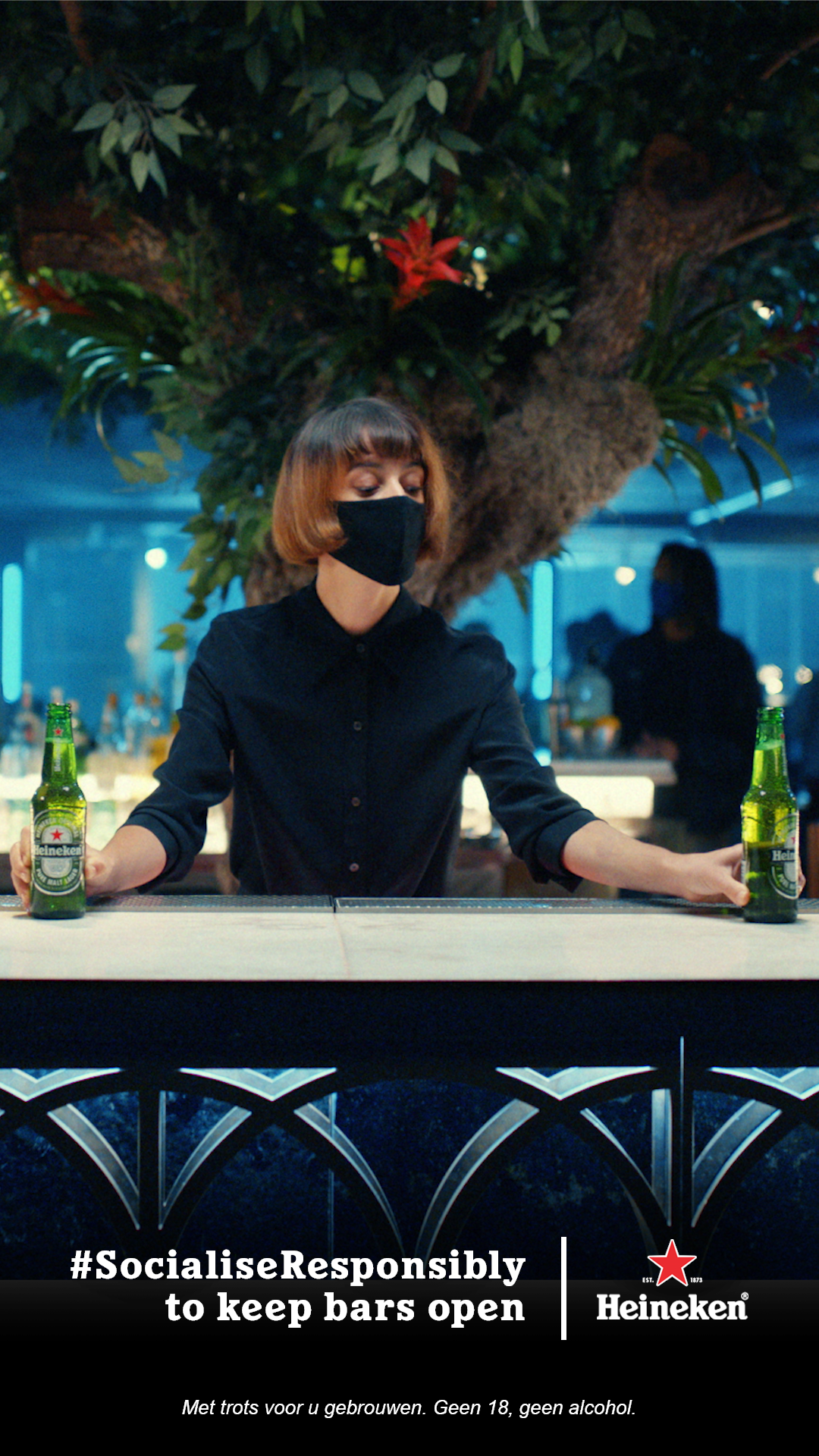 Heineken® lanceert maandag 27 juli de nieuwe campagne ‘Back to the bars’ als onderdeel van het wereldwijde initiatief #SocialiseResponsibly. Met deze reclame vieren we de dat de horeca open is en herinneren consumenten tegelijkertijd aan hun verantwoordelijkheid: alleen door de veiligheidsvoorschriften in het ‘nieuwe normaal’ te respecteren helpen we de horeca open te blijven en kunnen we blijven genieten van een vers getapt biertje. Er is tenslotte één ding beter dan een avond uit, namelijk nóg een avond uit.