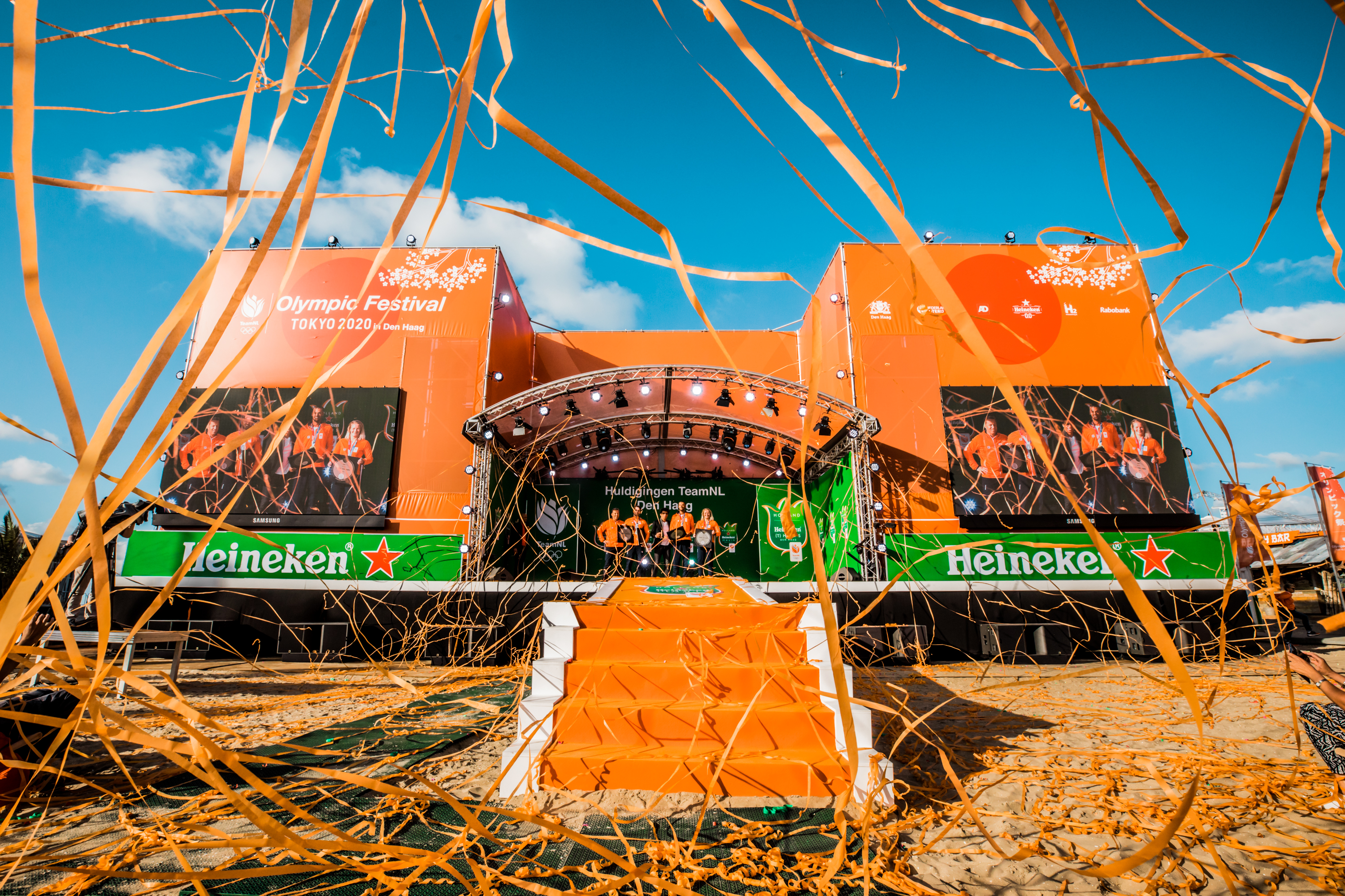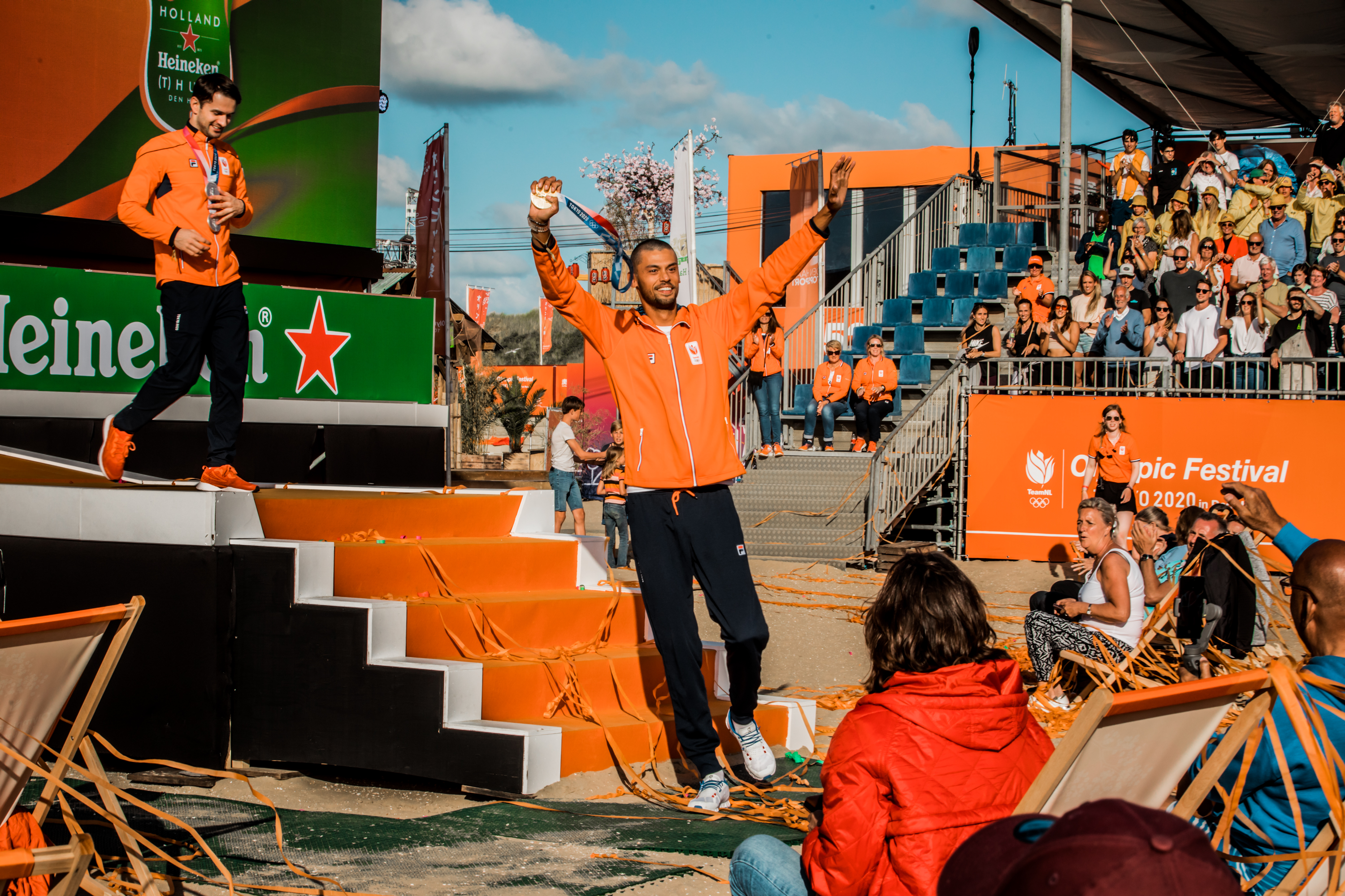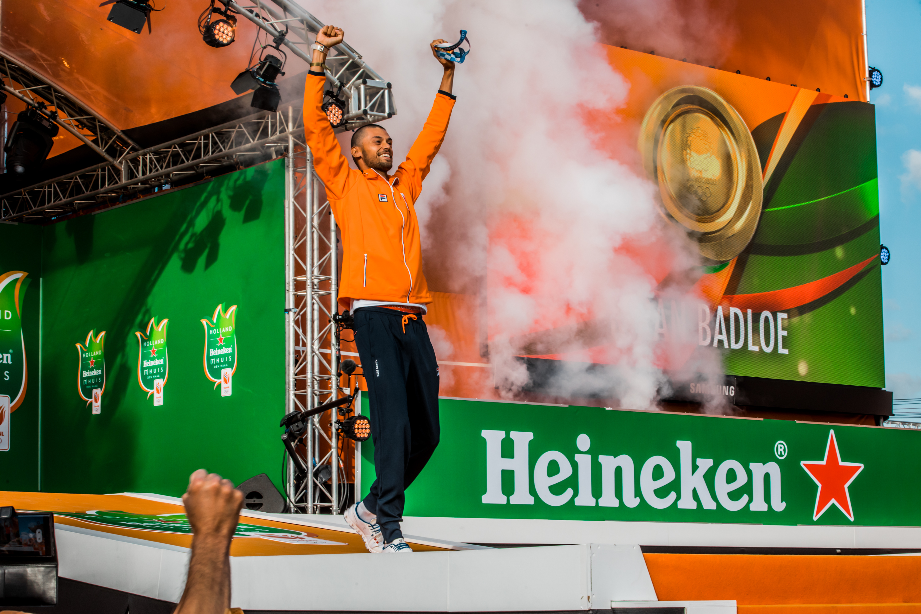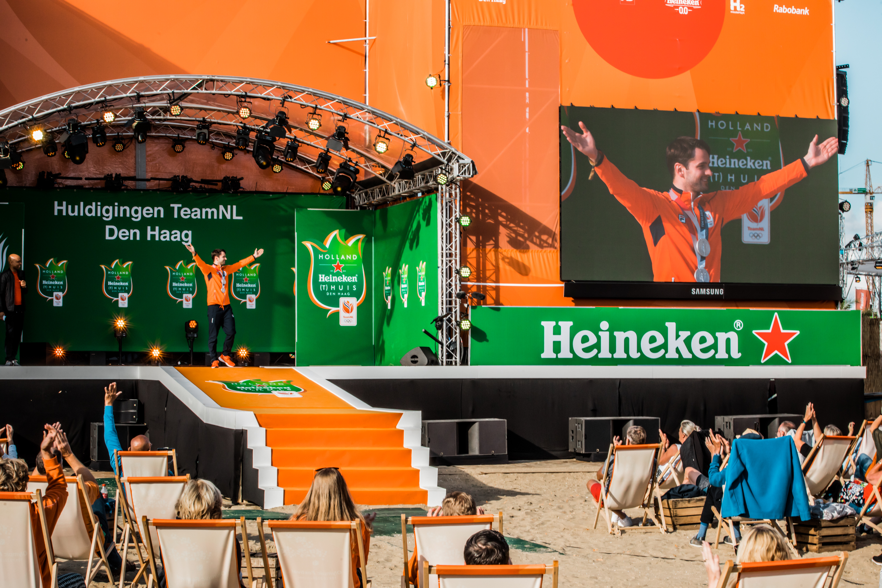 Kiran Badloe, Arno Kamminga en Sanne van Dijke zijn vanavond gehuldigd in Holland Heineken (t)Huis. In het zonnige Scheveningen werden zij door honderden enthousiaste familieleden, vrienden en fans onthaald.