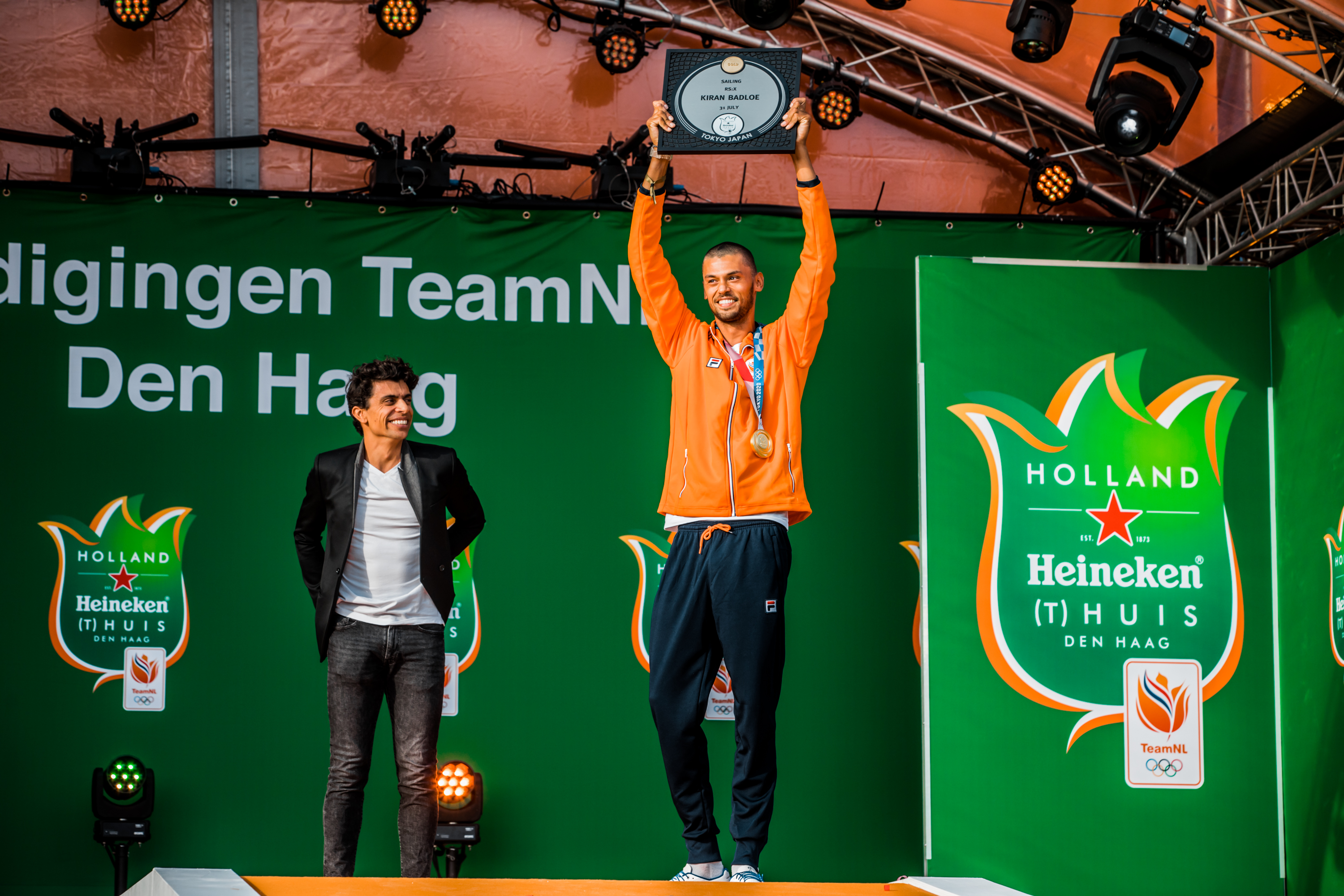 Kiran Badloe: “Je doet het met een klein team, daar in Tokyo. Dat we het hier met z’n allen kunnen vieren is de kers op de taart.“ Ook had hij mooie woorden voor zijn vriend Dorian: “De laatste jaren hebben we de sport gedomineerd met z’n tweeën. We hebben vaak aan de keuken tafel zitten grappen dat we alle WK’s gingen winnen én de Spelen. En dat is gelukt!”