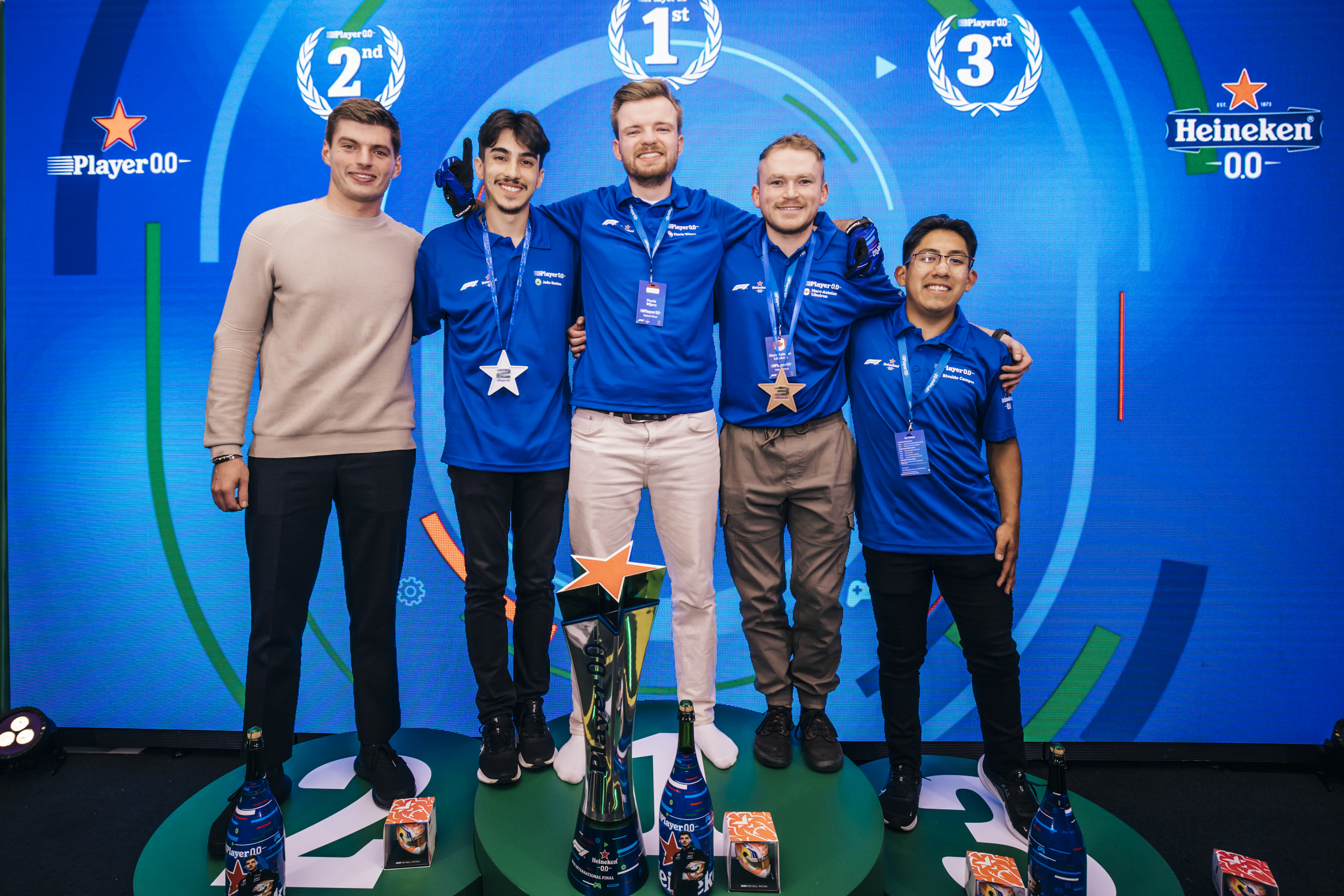 Floris Wijers (24), een amateur sim-racer uit Soest, kreeg vanavond het ondenkbare voor elkaar: hij versloeg drievoudig F1® wereldkampioen Max Verstappen tijdens de internationale finale van de Heineken® Player 0.0 competitie. Floris overtuigde eerder op de avond al tijdens de kwalificatie van de sim-race, waarin hij zichzelf naar pole position reed, vóór de finalisten uit Brazilië, Canada en Max Verstappen. Tijdens de uiteindelijke race van de wereldwijde krachtmeting, te midden van de historische muren van de Heineken Experience in Amsterdam, wist Wijers zijn concurrenten ver achter zich te laten. Op plek twee eindigde João Piana uit Brazilië, Verstappen eindigde als derde. Er stond dus opnieuw een Nederlander bovenop het podium van een F1-race, maar dit keer virtueel. (tekst loopt door onder foto)
