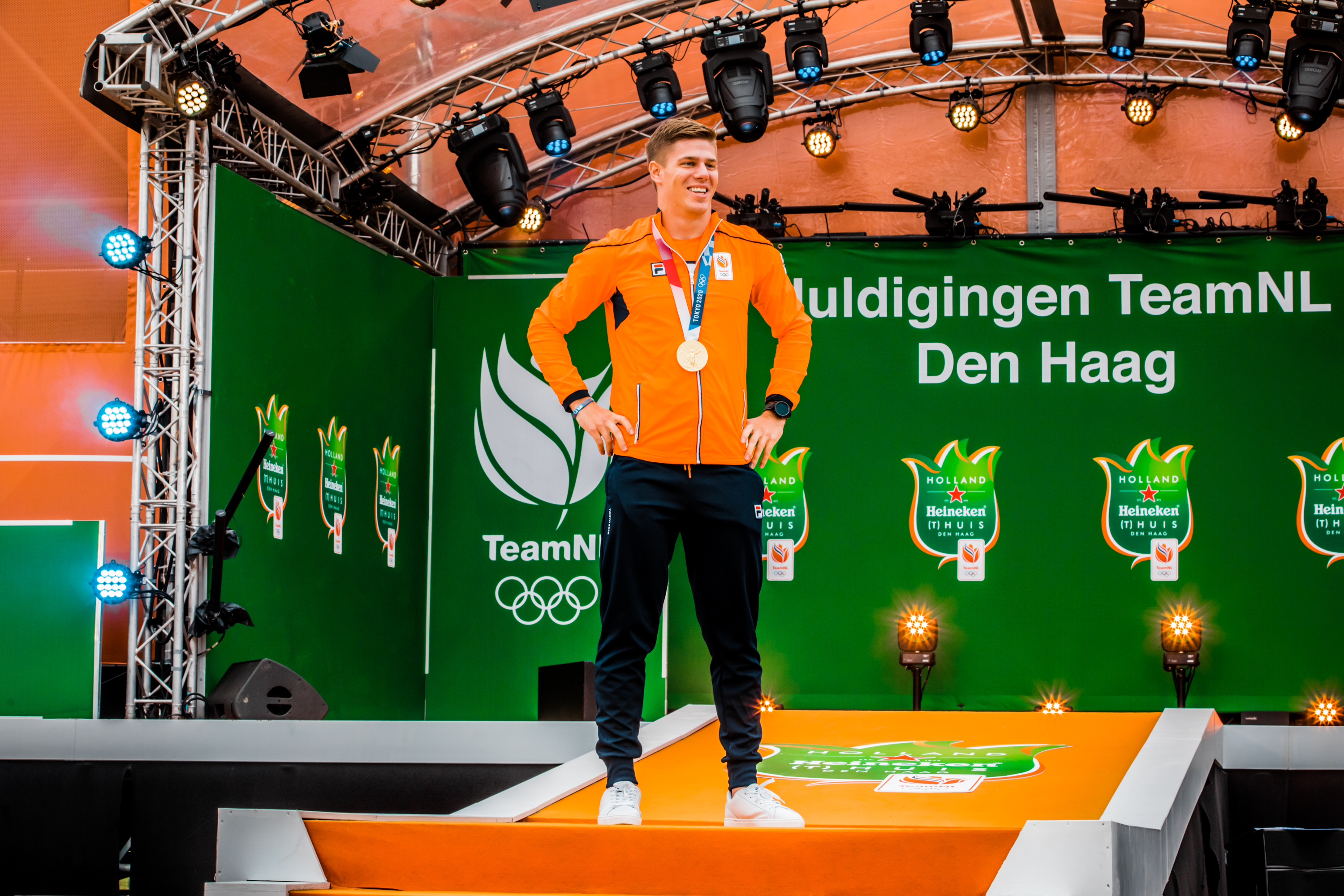 Ook Niek Kimmann werd vanavond extra in het zonnetje gezet voor zijn bijzondere prestatie. De eerste gouden BMX medaille ooit voor Nederland maakte veel los. Niek droeg in Tokyo zijn medaille al mede op aan zijn vriend Jelle van Gorkum, die op de Spelen in Rio een zilveren medaille wist te veroveren. Na het ongeluk van Jelle in 2018 was er voor Niek maar één doel. De gouden medaille pakken in Tokyo, want die miste nog voor het Nederlandse team. Op Niek's vraag of Jelle naar de huldiging kwam zei hij een dag van tevoren nog: "De moeder van m'n vriendin is jarig, ik kan er dus niet bij zijn." Tot Niek's grote verrassing kwam zijn vriend toch ineens het podium op. In het Holland Heineken (t)Huis reikte hij niet alleen de tegel uit maar kreeg Niek ook nog een heel speciaal cadeau. Jelle ontwierp samen met de Haarlemse tattoo-artist een tattoo voor zijn vriend Niek, waar de verhalen van de mannen samenkomen. Of de vraag van Humberto of de tattoo ook daadwerkelijk gezet gaat worden kwam nog geen verlossend antwoord.