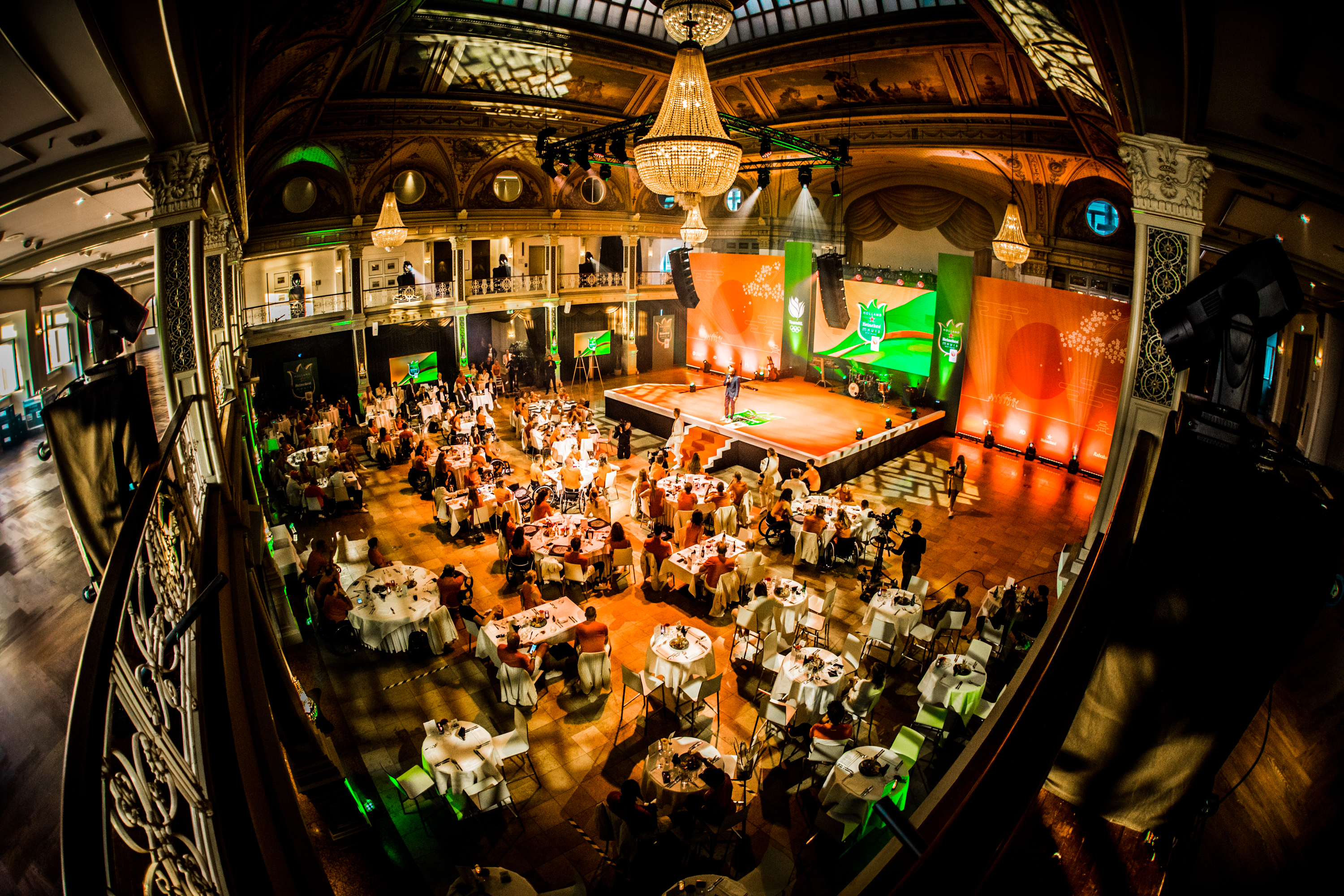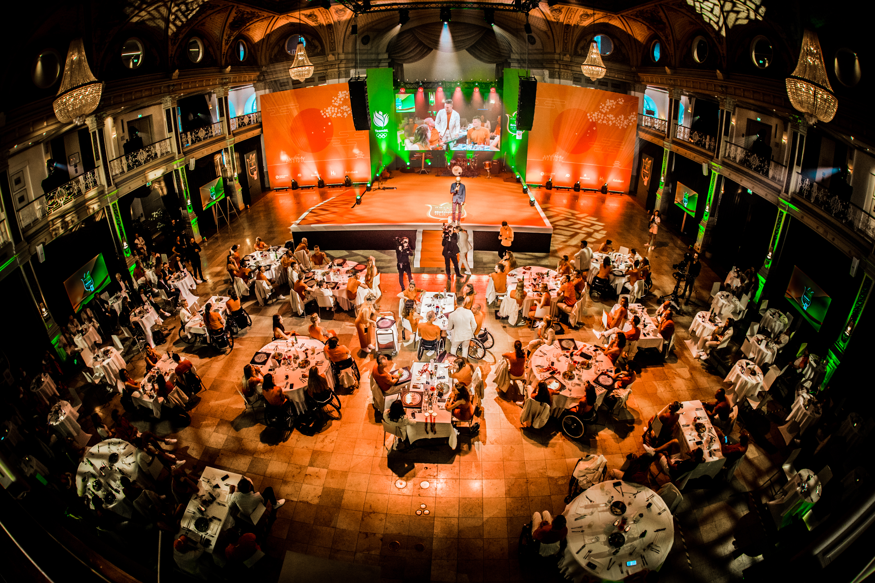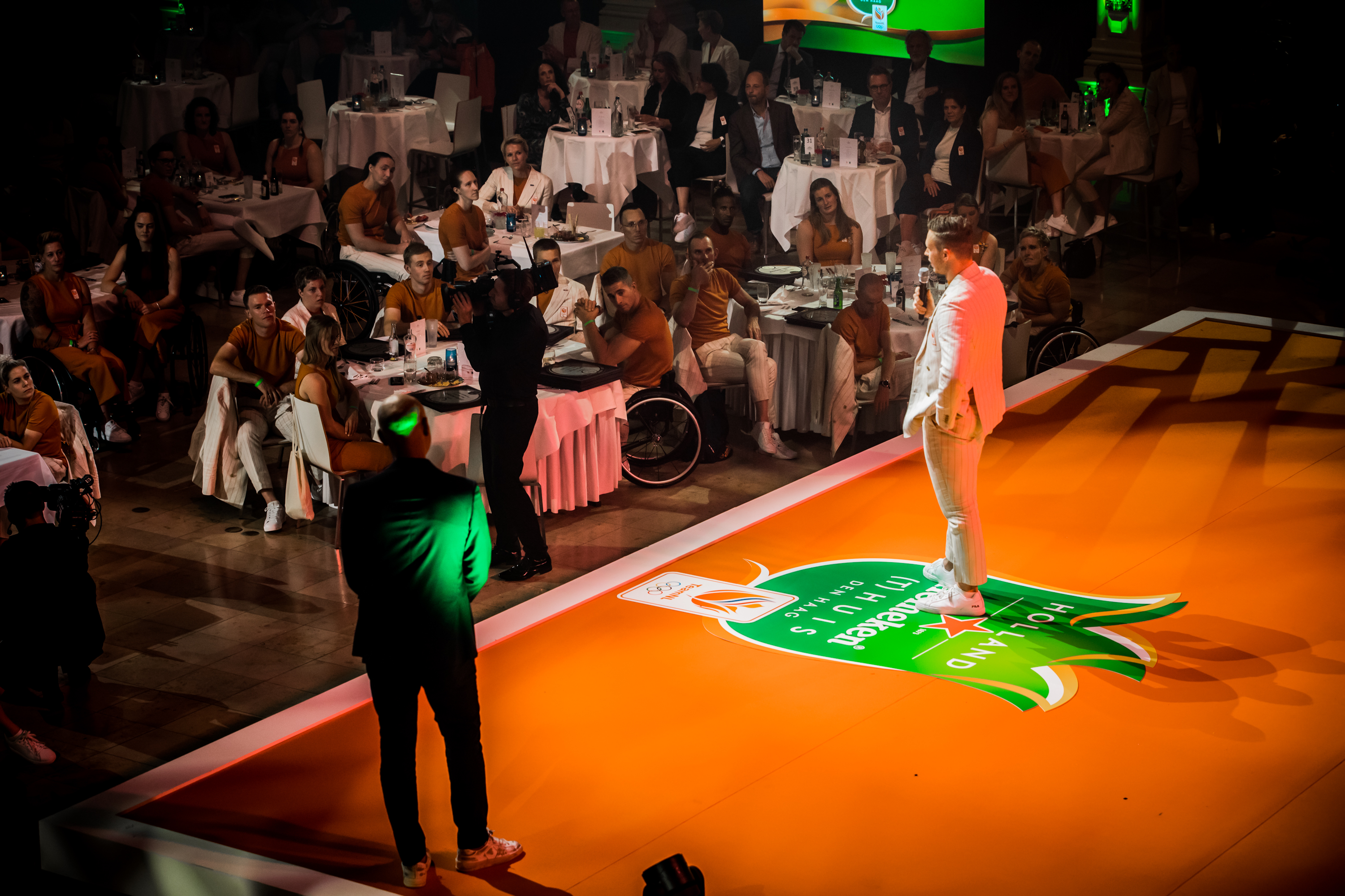 De medailleregen op de Paralympische Spelen in Tokio werd vanavond feestelijk afgesloten in het Kurhaus in het zonnige Scheveningen. Alle 59 medaillewinnaars ontvingen uit handen van Humberto Tan een Holland Heineken (t)Huis-eretegel en werden per groep toegesproken door een topsporter. En daar genoten ze zichtbaar van.