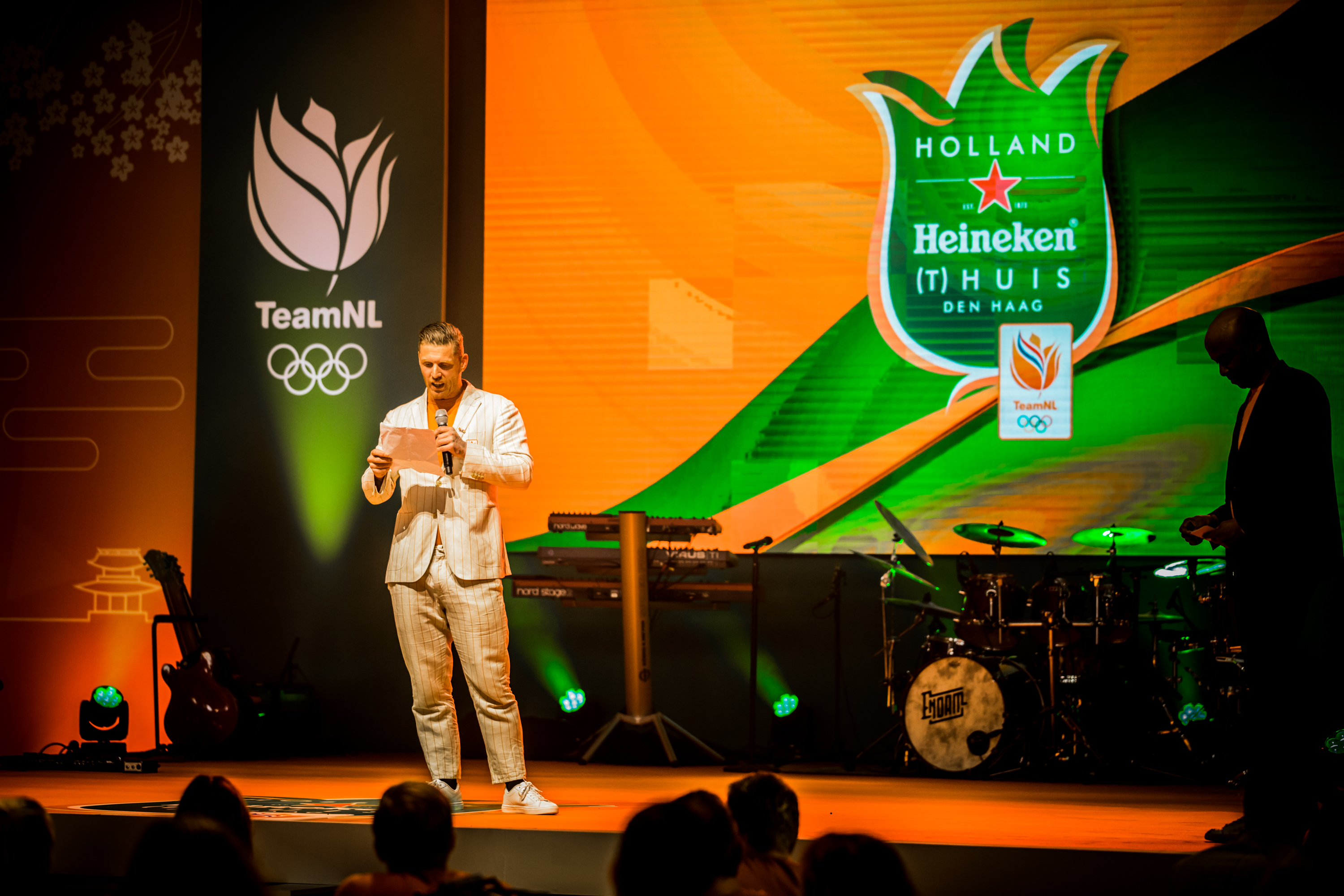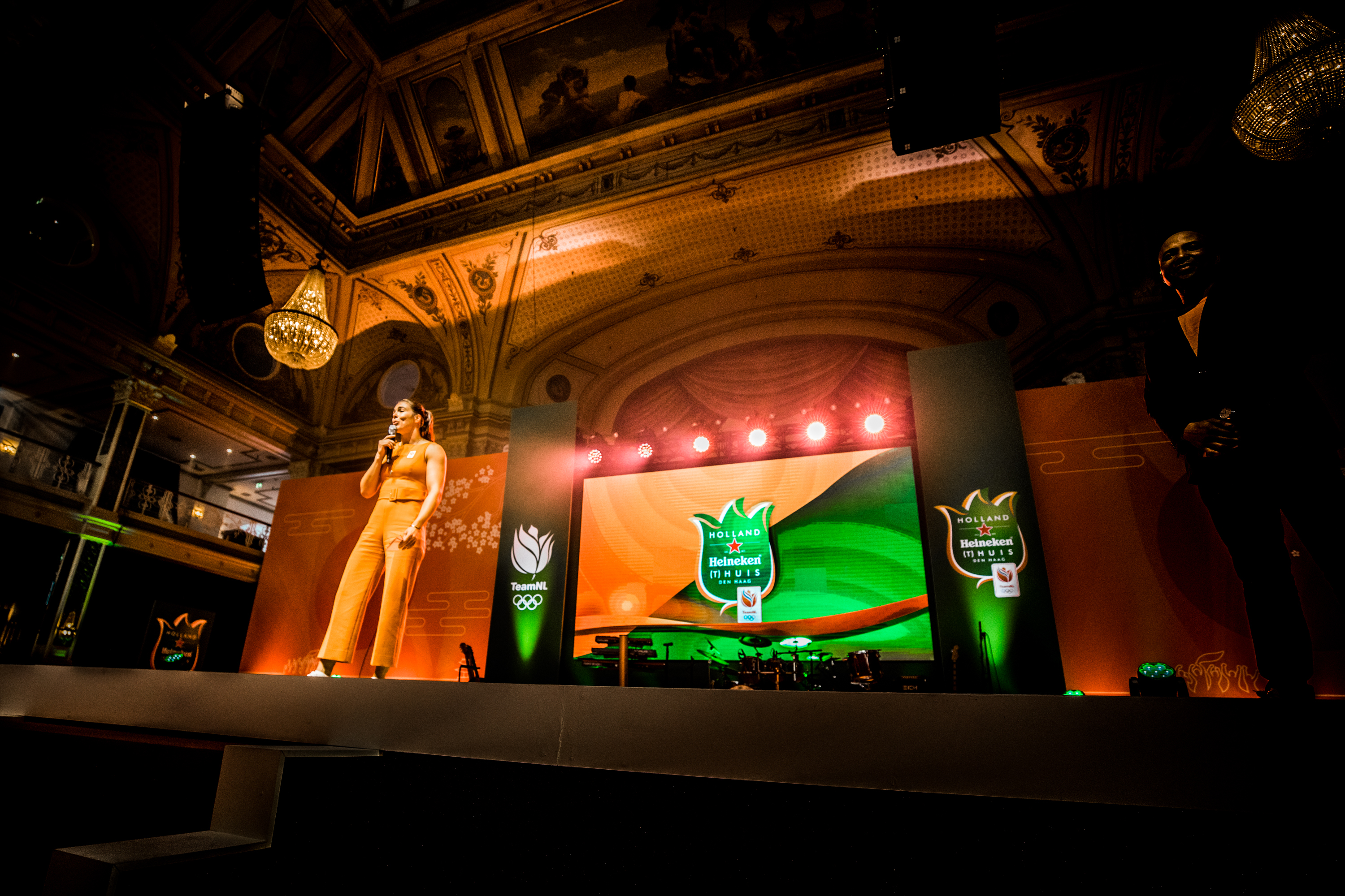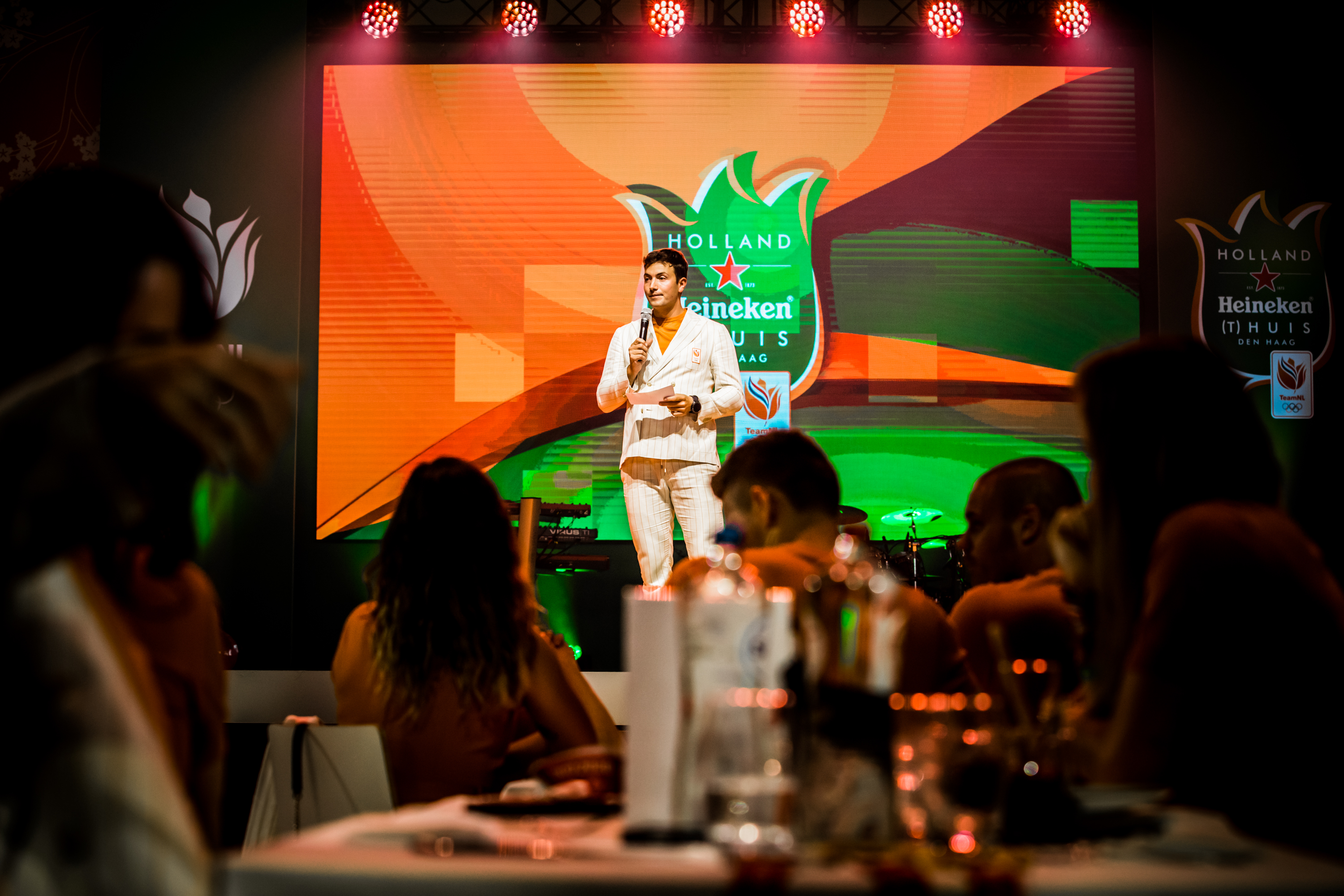 De medailleregen op de Paralympische Spelen in Tokio werd vanavond feestelijk afgesloten in het Kurhaus in het zonnige Scheveningen. Alle 59 medaillewinnaars ontvingen uit handen van Humberto Tan een Holland Heineken (t)Huis-eretegel en werden per groep toegesproken door een topsporter. En daar genoten ze zichtbaar van.