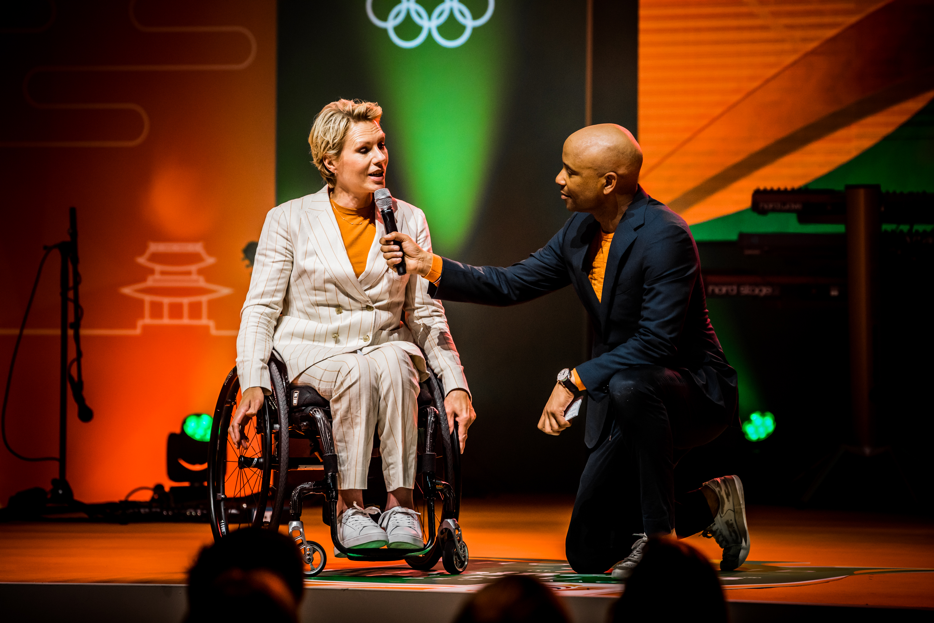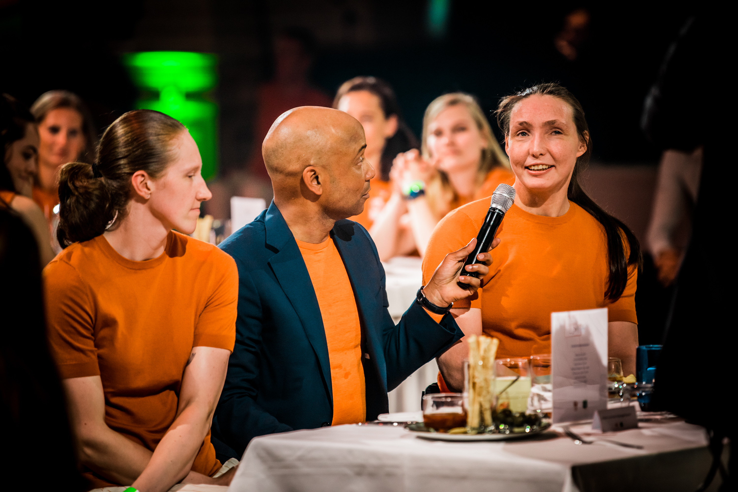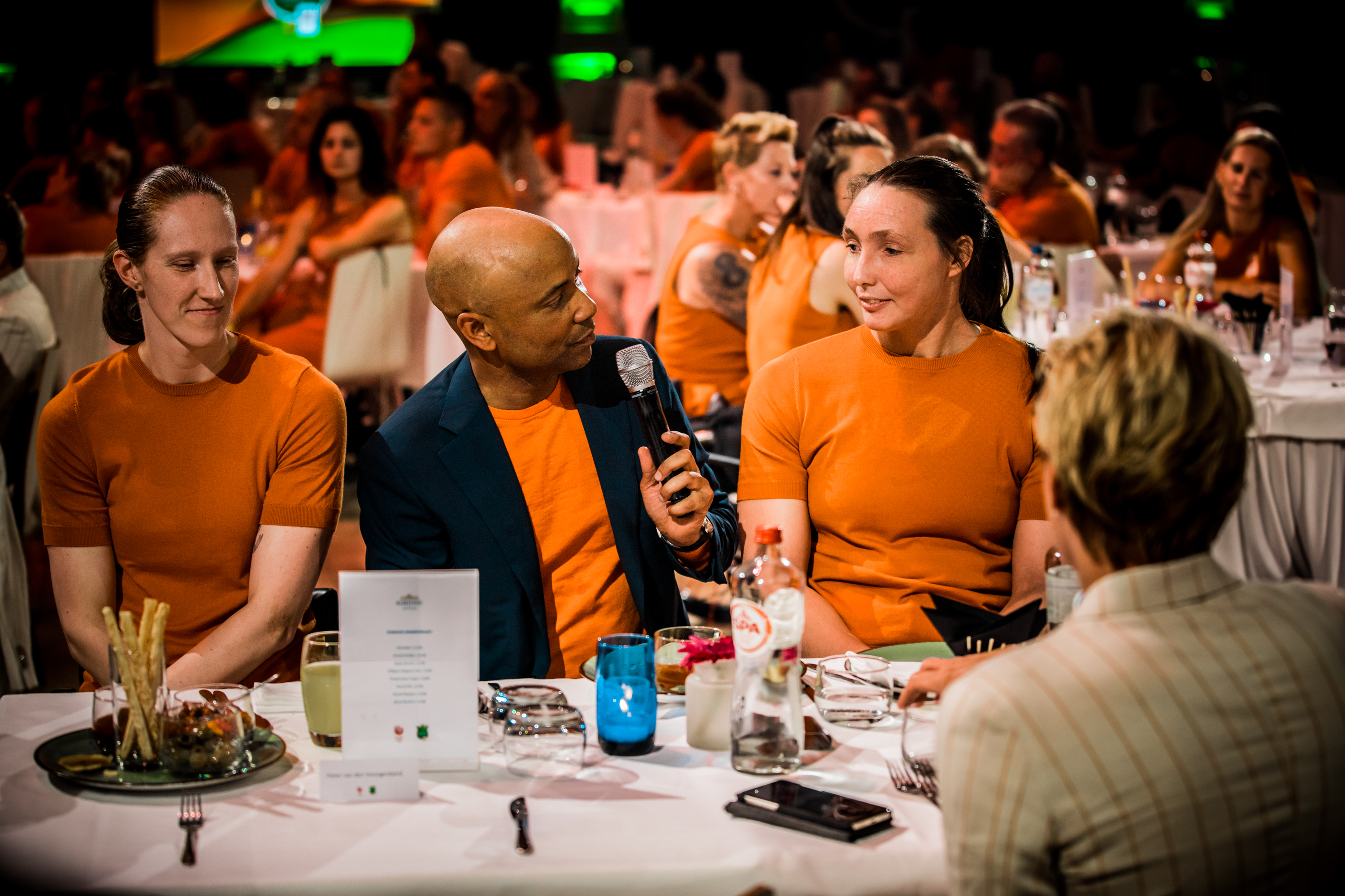 Vervolgens was het de beurt aan de watersporters. Zwemster Chantalle Zijderveld won twee keer goud, twee keer zilver en één keer brons. Welke het beste voelde, vroeg Humberto Tan haar. “De 100 meter schoolslag is toch wel mijn kindje. Het was mijn revenge op Rio. Maar goud was ook wel een lekkere om mijn carrière af te sluiten hoor.” Roeier Stef Broenink rijkte de tegels uit. “Acht sporters met achttien medailles. Wat een ongelooflijke prestatie. Zelfs als we met alleen watersporters waren gegaan waren we nog als 24-ste land geëindigd. Jullie hebben daarmee echt laten zien dat Nederland een watersportland is.”